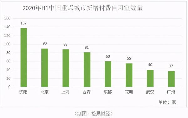 除了长沙,全国自习室数量有明显上升趋势。据艾媒数据显示,2019年全国新增付费自习室近千家,其中沈阳、北京、上海等城市付费自习室较火热,付费自习室开设数量较多。