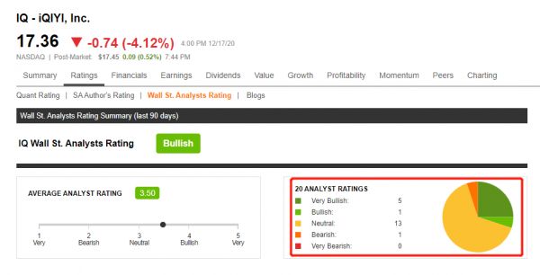 截至目前,华尔街27家主流投行之中,有20家的分析师给爱奇艺的股票下了结论,目前保持“中性持有”意见的占了绝大多数。