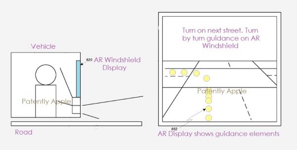 AR前挡风玻璃概念图 图片来源:Patently Apple