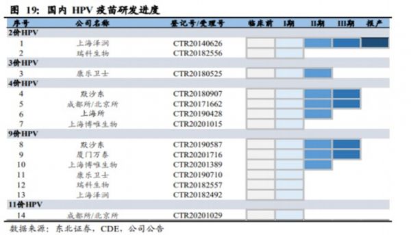 与此同时,还有一批“后来者”正在虎视眈眈,比如康乐卫士的三价HPV疫苗、国药北京所和成都所的四价HPV疫苗、默沙东九价HPV疫苗的年龄段拓展都已获得III期临床批件或启动III期临床。