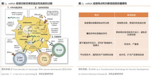 mRNA是最新的三代疫苗技术,将编码病毒S蛋白的RNA注入人体,利用人体细胞直接表达抗原蛋白,从而刺激人体产生免疫反应。简单来说,注射此类疫苗,就像输入一张图纸,把人体作为疫苗车间,在体内生产,这张图纸还可以在人体外简单拷贝且不走样,所以具有研发快,成本低,制备周期短等优势。