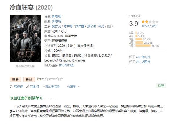 最新一季《演员请就位》还没结束,郭敬明导演的新作《爵迹2》就宣布院线转网,这部号称投资7亿元的特效电影除了郭敬明的宣传卖点外,很难早找到其他亮点,放在一众千万级别的网络大电影面前,甚至都不违和,豆瓣3.9的评分和第一步3.8分几乎没有大的区别。