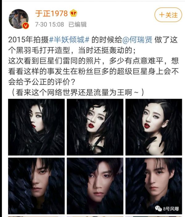 从力挺翟天临博士论文抄袭到指责TF boys演唱会造型抄袭他2015年《半妖倾城》给何瑞贤拍的定妆海报,再到时不时在微博上爆出圈内话题猛料,于正虽然没有作品播出但是一直在话题热点上,不完全统计2019年至今已经有超过72次热搜。