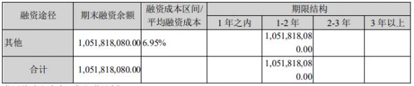 另外,海航投资半年报显示,公司期末货币资金高达13.56亿元,期末融资余额却有10.52亿元,融资成本为6.95%,融资途径为"其他",期限结构为1-2年。