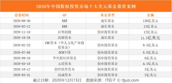 此外,2020 年还有 CMC 资本、DCM 中国、华兴新经济基金、元璟资本、创世伙伴资本以及高成资本等机构完成了超过(含)3 亿美元的募资。