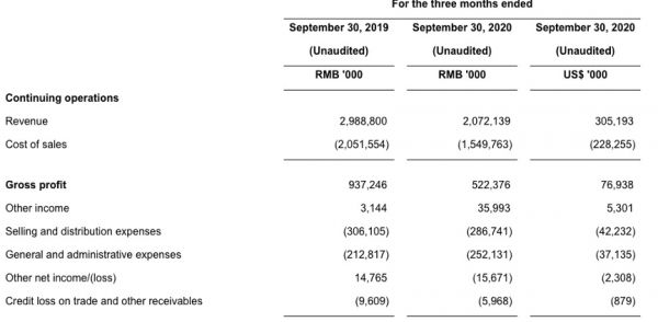 数据显示,6月到9月的这个季度里,营收20.72亿,同比下降30.7%,环比上涨33.4%;毛利5.22亿,同比下降44.3%,环比增长37.7%。