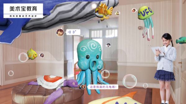 在内容和产品之外,未来美术宝教育还将上线新的板块,为小朋友搭建了在线「房间」——一个基于AR技术的立体空间。小朋友可以拥有自己「作品房间」,将创作的绘画「摆放」在自己的「房间」里,并且邀请朋友「进入」房间参观。