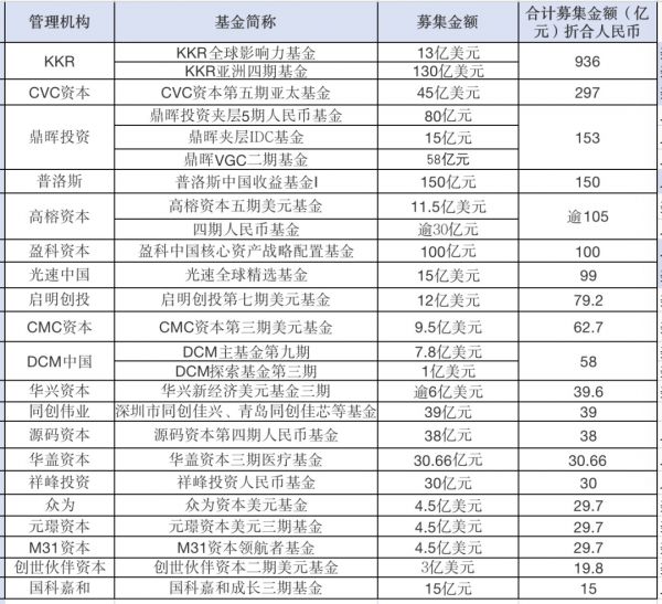 KKR、CVC、高榕资本等美元基金募资成绩亮眼
