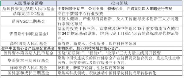 比如,鼎晖投资夹层5期人民币基金,主要围绕不动产、公司业务、特殊机会、并购重组四大策略进行布局;鼎晖夹层IDC基金,专注于数据中心行业投资;普洛斯中国收益基金Ⅰ将投资于长三角、京津冀及华中等地区18个重要物流节点城市的34处物流基础设施,均为已完工且稳定运营的高标准现代物流资产;华盖资本三期医疗基金,则聚焦中国快速成长的医疗健康全产业链投资及整合机会。