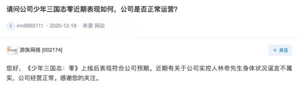 在12月18日,已经开始有传闻,但当时游族网络在深交所投资者关系互动平台上,称有关林奇身体状况的谣言不属实,公司目前正常经营。