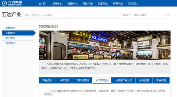 2018年10月29日,万达集团公告称,一直看好中国文化旅游行业的发展前景,今后万达将继续投资文旅产业,保留文化旅游产业的骨干团队,重组文旅规划院、文旅建设中心和文旅管理公司。