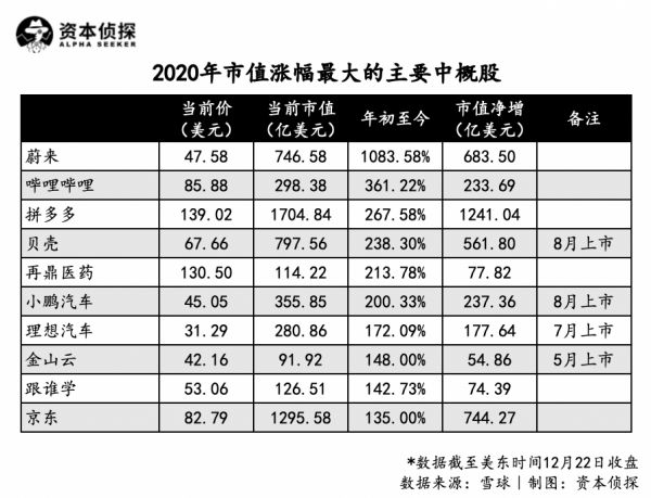 美股蔚来一年涨幅超过10倍,拼多多翻了近3倍,一跃成为市值规模仅次于阿里巴巴的中概股互联网企业;