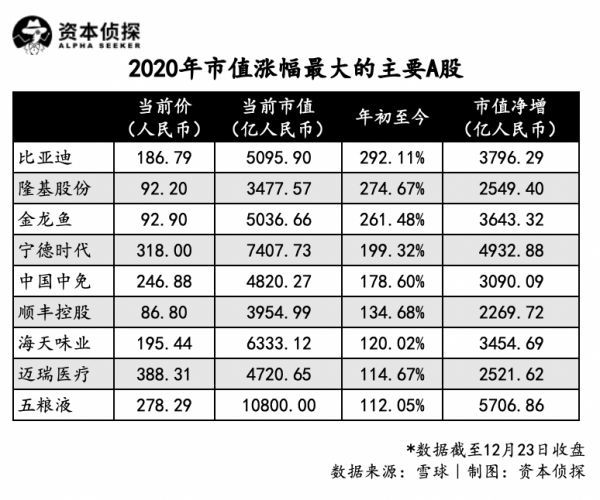 A股因为散户化程度更高,一直都更容易催生出一些暴涨暴跌的妖股。但这些妖异的走势往往都出现在一些不知名的小盘股身上,如果只看市值规模处于第一梯队的头部企业,与美股、港股行情相比,它们的增长幅度反而显得更加克制。
