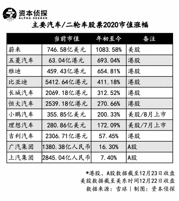 不过,今年的独特之处在于,疫情推动车市回温,与新能源概念的爆发叠加在了一起,将电动车企业推向新高点。