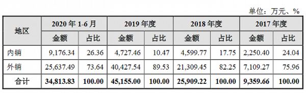 此前的财报也显示,三元生物在销售区域上以境外市场为主,2017年至2020年上半年,公司外销占营收的比例分别为75.96%、82.25%、89.53%、73.64%。这一趋势从公司前五大客户名单也有所体现,今年上半年,三元生物前五大客户销售额占总营收的50.94%,分别是莎罗雅、山东欣诺辰生物科技有限公司、HhoyaB.V.、美国TIH、Legent(HongKong)Co., Limited。其中,除欣诺辰生物之外,其余4家均为境外客户。