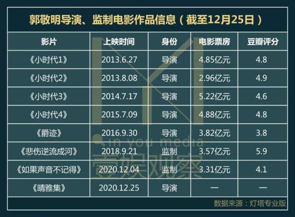 自2013年郭敬明处女作《小时代》热卖4.85亿,系列四部作品狂揽18亿元起,郭敬明作品一直与年轻观众紧密结合。