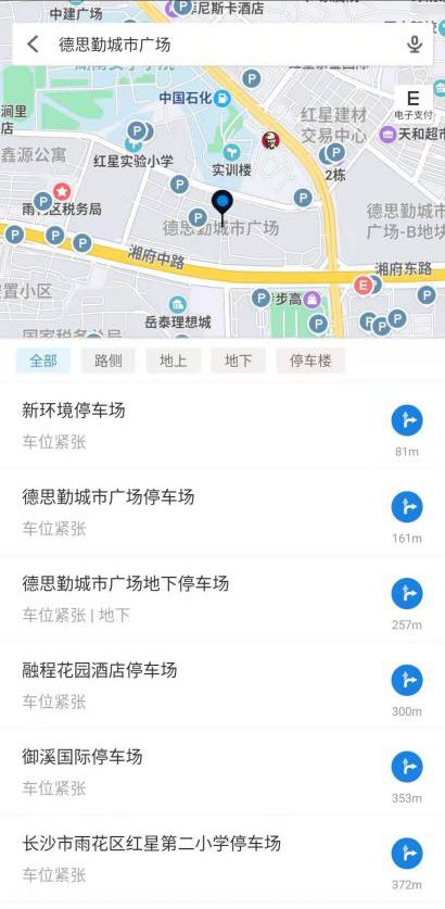 “智能相对论”通过etcp停车App定位了长沙重要商圈“德思勤城市广场”,想要获取附近停车位的具体情况,但最终得到的反馈仅有“车位紧张”的模糊提示,其作用等同于没说吧。