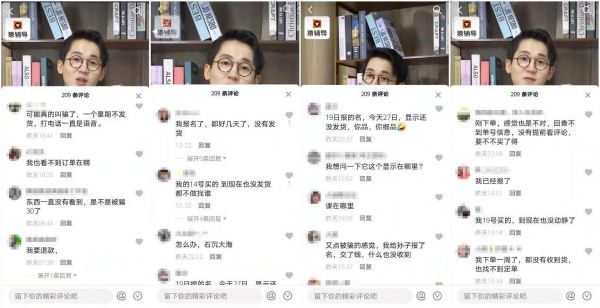 但点开上图最左侧的广告视频,209条评论几乎都是报名近十天未发货,想要退款联系不上客服之类的吐槽。