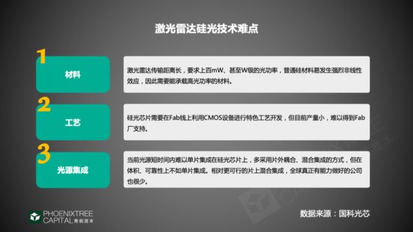 材料、工艺、光源集成这3大要素,是目前全球硅光技术普遍面临的难点。但国内整个行业、入局企业也在逐步攻克这些世界性难题。陆续打通硅光工艺平台,各地建设硅光Fab平台,如中科院微电子所、中国电科38所等,为硅光激光雷达量产打好基础。