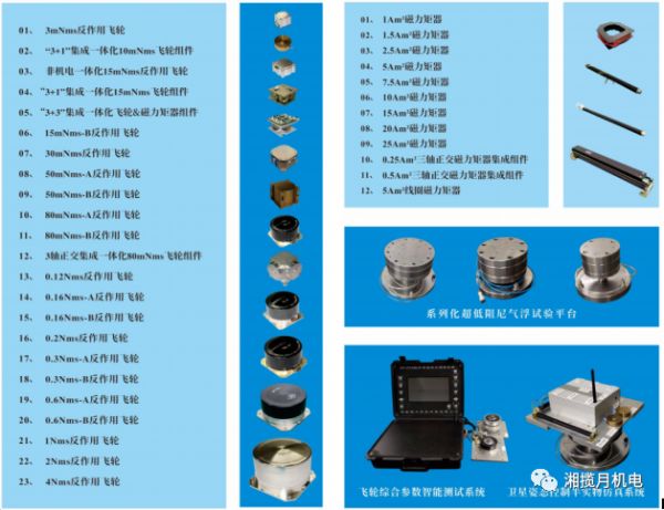 当前湖南揽月主力为三大系列高性价比卫星配件产品,已开发30余款卫星反作用飞轮(3mNms~6Nms全系列)、20余款磁力矩器(0.5Am²~150Am²全系列)以及承载力500kg级内的超低阻尼气浮试验平台和单轴姿态控制半实物仿真平台,可全面覆盖500kg级以下卫星应用。
