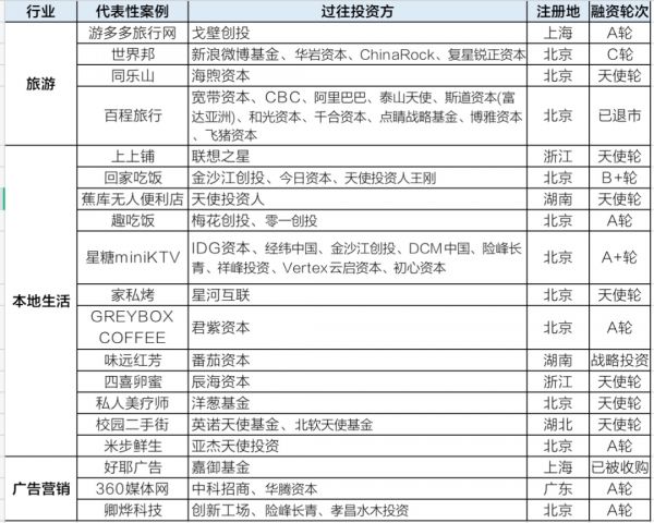除上图中所示领域及案例外,教育行业的兄弟连、明兮大语文、百弗英语、趣动旅程、传课网,汽车交通领域的ofo小黄车、博郡汽车、猪兼强,游戏领域的游悦网络、比麟科技、我的世界精灵、智精无线,文娱传媒领域的触手TV、九月光合、小葱;社交网络的帕斯菲德、天天租我等,均未能走到2021。