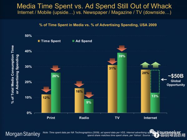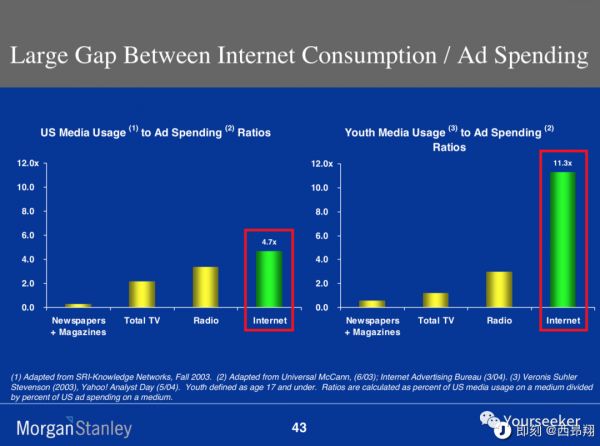 也就是说,Mary Meeker 用数字而非拍脑袋的方式给出了一项科学预测:互联网广告确有巨大潜力等待释放。