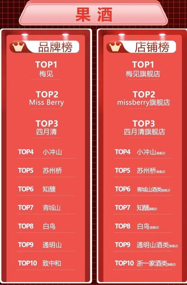 今年3月14日,梅见在李佳琦直播间造势,20万瓶青梅酒销售一空;不久后的“618”,梅见登上天猫果酒类榜单第一名;到了今年双11,梅见位居天猫果酒类品牌第一。