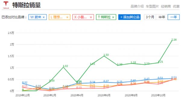 从年初至今,特斯拉股价暴涨了674%,蔚来股价暴涨了114%。从上市至今,理想和小鹏汽车股价分别上涨了74%和96%之多。股价飙升的背后是新能源汽车一路向好的销量,特斯拉在今年的10月份销量更是突破了两万辆。