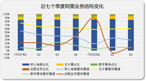 阿里云延续了强劲表现,七个季度以来,营收规模不断扩大,占比由起初的8.3%增长至9.61%,距离10%仅一步之遥。