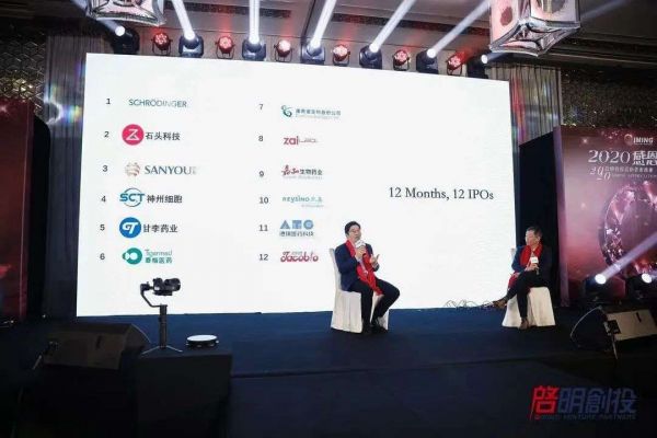 胡旭波:刚才那几个数字应该是最新(编者注:截至2020年12月28日交易时间)的市值(单位为亿)。第一个就是我们投资的Schrödinger,用AI来提高药物研发效率,我们投资后一年在美国上市了。它是很典型的硬核科技企业,同时也是启明创投TMT和医疗健康两个团队一起做研究、一起做投资决策的典型案例。