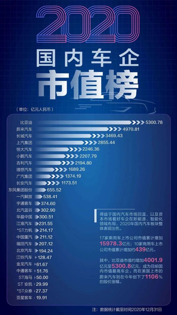 2020汽车公司市值榜:新能源引爆资本市场,超8成上市车企业绩“飘红”