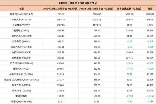 2020年,注定是载入史册的一年。突如其来的新冠疫情,不仅让人们的生活被迫按下暂停键,同时也让汽车行业一度陷入停滞,全球车市都受到一定冲击。不过,从资本市场来看,汽车板块处于拉升状态,多数车企市值仍较为坚挺,超8成上市车企市值呈上升趋势。