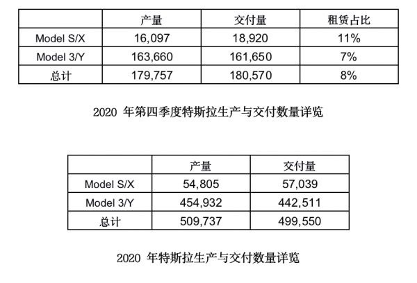 特斯拉公布数据显示,2020年共生产509,737辆电动汽车,向消费者交付499,550辆,同比大幅增长39.6%和36%。此前,特斯拉提出的目标是在2020年交付50万辆电动汽车,最终的交付量距离目标还差450辆,对此特斯拉在官方通报中称这一数据“基本达成预期”。