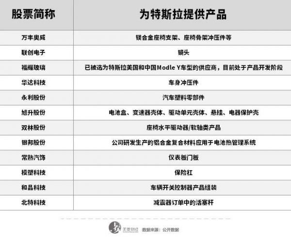 比如近期福耀玻璃表示,已被选择为特斯拉美国和中国Model Y车型的供应商。万丰奥威子公司已取得特斯拉Model Y供应商订单,为其供应镁合金座椅支架、座椅骨架冲压件等产品服务。