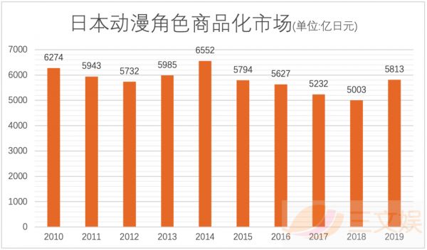 2019年,日本基于动画内容、及动画改编游戏等内容的角色商品零售市场规模约为630亿元,其中动画周边销售同比增长了16.2%至366亿元,和动画相关的游戏、贴图等周边销售约为252.4亿元。
