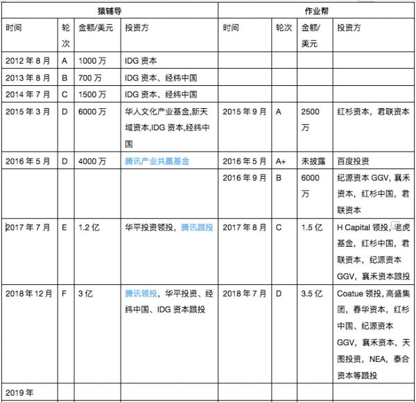 我们发现双方的融资能力其实是在2020年才发生了转变,2019年之前,猿辅导7年融资5.44亿美元,作业帮4年融资10.85亿美元,作业帮可谓后来居上,仅在2018年就完成了8.5亿美元融资。