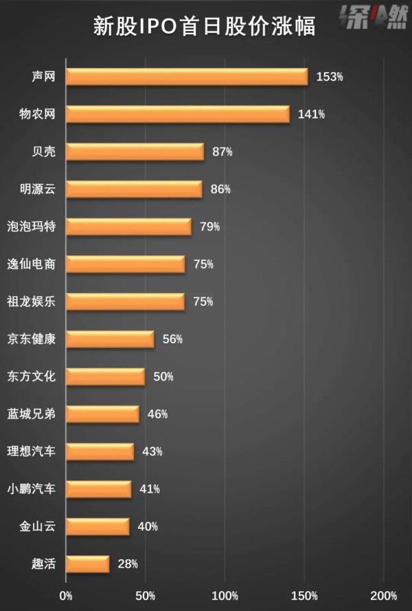 声网和物农网在IPO首日就股价翻倍了,贝壳、明源云、泡泡玛特、完美日记在IPO首日的涨幅都超过70%,理想和小鹏超过40%,这都是互联网行业的明星项目,一登陆资本市场就受到资本热捧。那些参与了打新、并且拿到了额度的人,在极短的时间内就获得了丰厚回报。