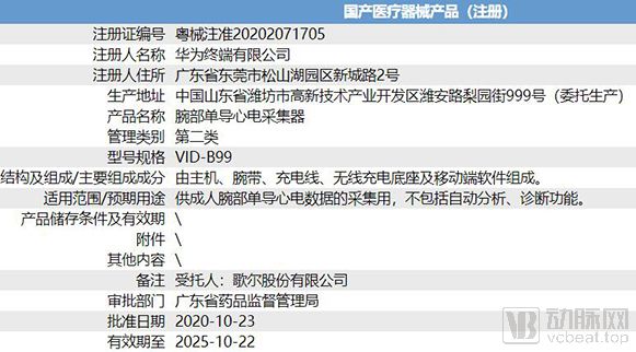 华为Watch GT2 Pro ECG医疗器械注册证信息(截图来自NMPA官网)