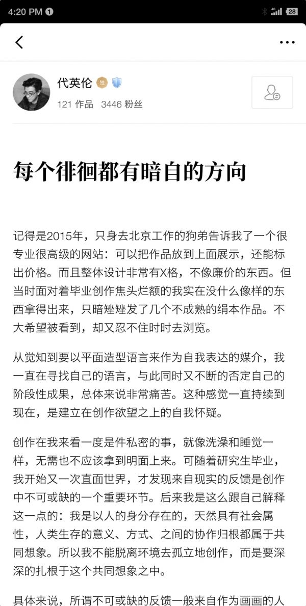 Artand艺术家不仅发布画作,还会发表一些心路历程