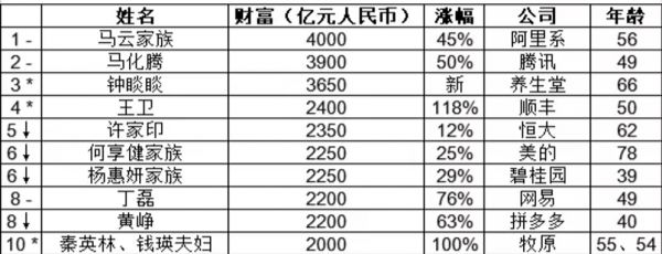 电商巨头创始人的财富仍在高速增长。马云连续四次成为中国首富,是历年来第一位四次荣登首富宝座的企业家。40岁的黄峥一年财富增长63%,以2200亿身家排名第八。