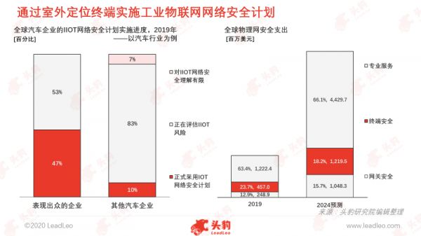 接近半数表现出众的汽车企业已经正式采用IIOT(工业物联网)安全计划:在2019年表现出众的汽车企业中,47%的企业已采用正式的IOT网络安全计划;而在其他汽车企业中,这一比例仅为10%;
