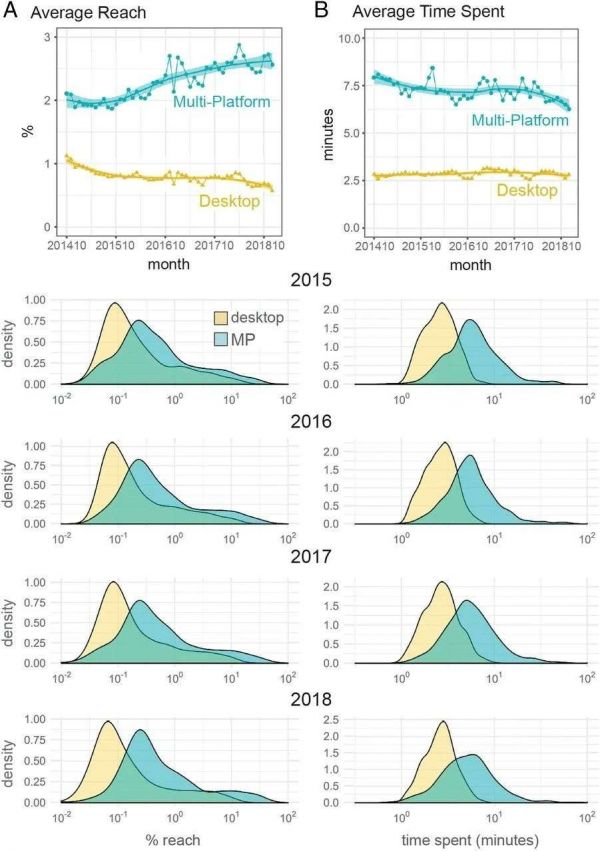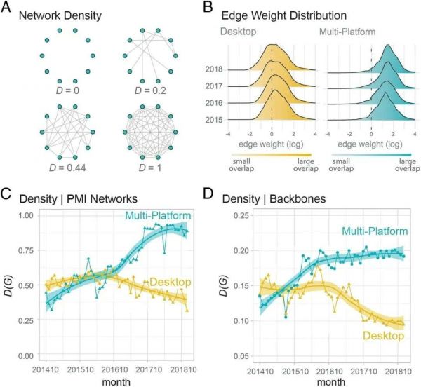 注:随着时间的推移,移动端多平台语境下受众重叠网会变得更加密集(来源:PNAS)