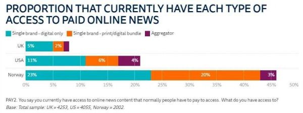 注:你选择的在线新闻消费方式是下列哪一种?在线新闻单品订阅、单品纸质/数字版捆绑订阅、多品类捆绑订阅(来源:Reuters Institute)