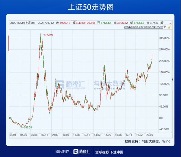 今日,上证50再度暴涨3.4%,最近9个交易日暴涨11%,创下13年来新高,破掉2015年高位,下一步挑战2007年的历史最高峰。与此同时,上证50估值水涨船高,当前PE倍数高达14.6倍(金融地产权重大),超越2015年高位,大幅超过10年来估值中位数9.92倍。