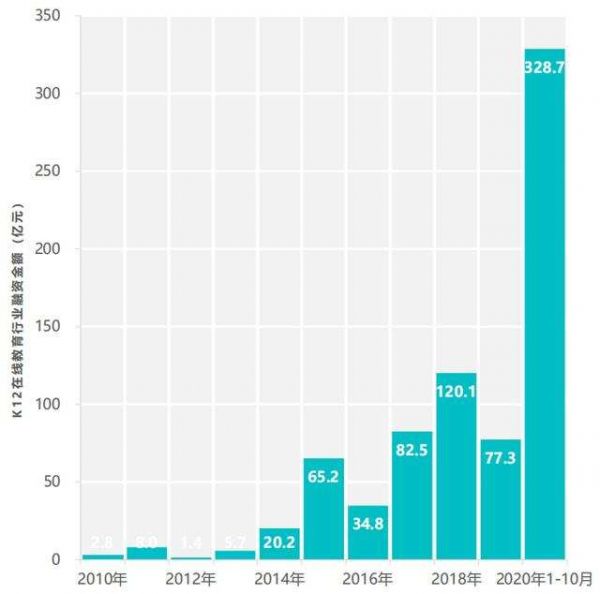 K12在线教育行业在去年的融资额度超过500亿元人民币。前10月,K12在线教育融资近330亿,超过去四年融资金额总和。