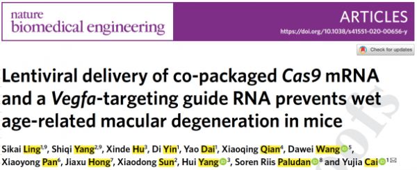 近日,Nature Biomedical Engineering和Nature Biotechnology接连发文,均指向一种介于病毒载体与非病毒载体之间的类病毒体(virus-like particle, VLP)递送技术,在这两篇研究报道中,都是递送的CRISPR/Cas9 mRNA,分别在湿性年龄相关黄斑变性和疱疹性基质性角膜炎小鼠模型中展现了治疗潜力。