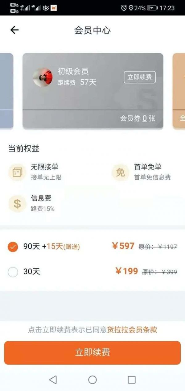 在社交媒体上,司机缴纳会员费后仍接不到单的抱怨层出不穷。近日,针对老用户,近期货拉拉在全国大部分地区会员费减半,并额外赠送天数,以杭州地区为例,初级会员30天原价399元,现在199元即可续费,高级会员原价799,现在399元,相当于此前初级会员的会费。货拉拉在平台司机招募和留存压力不断增大,会员流失严重的情况下,调低会员费,一方面显示出会员费模式并没有真正让司机享受到会员服务,平台管理不善,造成司机流失,同时也说明货拉拉在同城货运市场面临着巨大行业竞争压力。