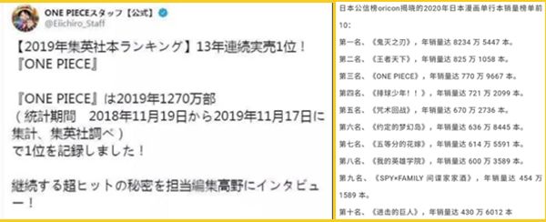 (2019年和2020年的销量冠军分别是《海贼王》和《鬼灭之刃》)