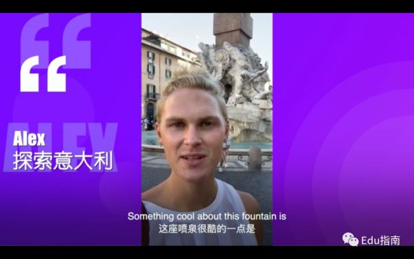 老师录制视频场景是多元的。比如Edu指南看到BlaBla上,一位外教边探索意大利实景,边用英语与中文翻译录制短视频教学。