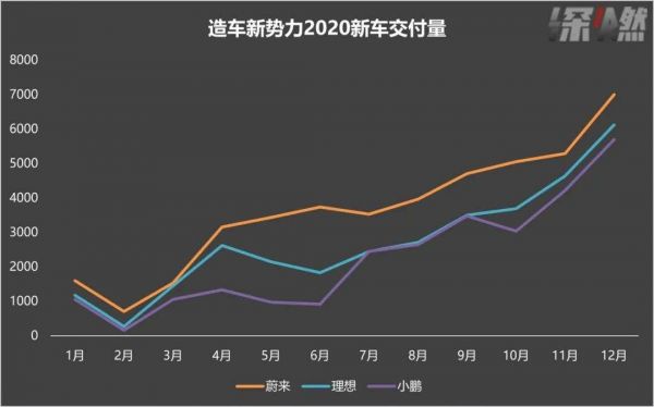 造车新势力2020年新车交付量 制图 / 深燃